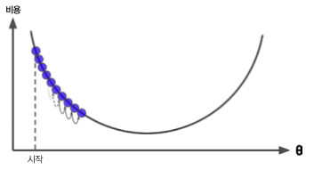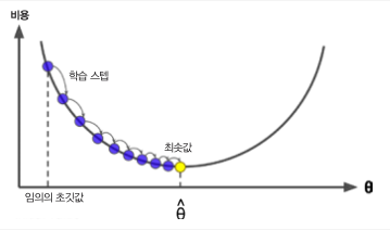 결론부터 말하자면, 경사하강법은 Cost Function을 최소화하기 위해 반복해서 파라미터 값들을 조정해 가는 방법이다.