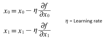 경사하강법을 수식으로 나타내면 다음과 같습니다.