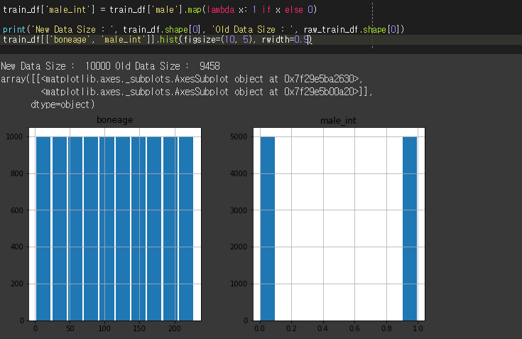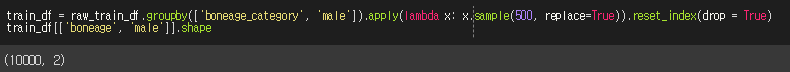 2번째 글 중에서 '연령 및 성별 분포 조사'를 보면, 'boneage'와 'male'의 분포가 균일하게 되어있지 않을것을 볼 수 있다. 옳바른 훈련을 하기 위해서 training dataset의 분포를 균형있게 조정해 주어야 한다.
