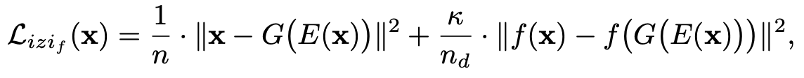 수식을 보면 Discriminator features는 AnoGAN에서 사용된 loss와 관련이 있는것을 볼 수 있다. Discriminator feature는 GAN을 학습할 때 얻은 parameter들을 사용한 것이다. feature space를 loss로 사용함으로 써 image space와 latent space에서 잘 mapping이 되도록 가이드를 제공해주는 역할을 한다고 논문에서 나와있다.
