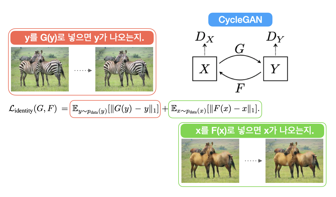 사실 Identity Loss는 써도 그만 안써도 그만 입니다. 다만 좀 더 detail하고 결과물의 quality가 중요하다고 하면 쓰는게 좋습니다. 예를 들자면 모네 그림같은 경우 그 특정 화가의 화풍을 캐치해야하고 명화니깐 이미지 퀄리티도 좋아야 하니 이러한 경우 Identity Loss를 사용합니다.
