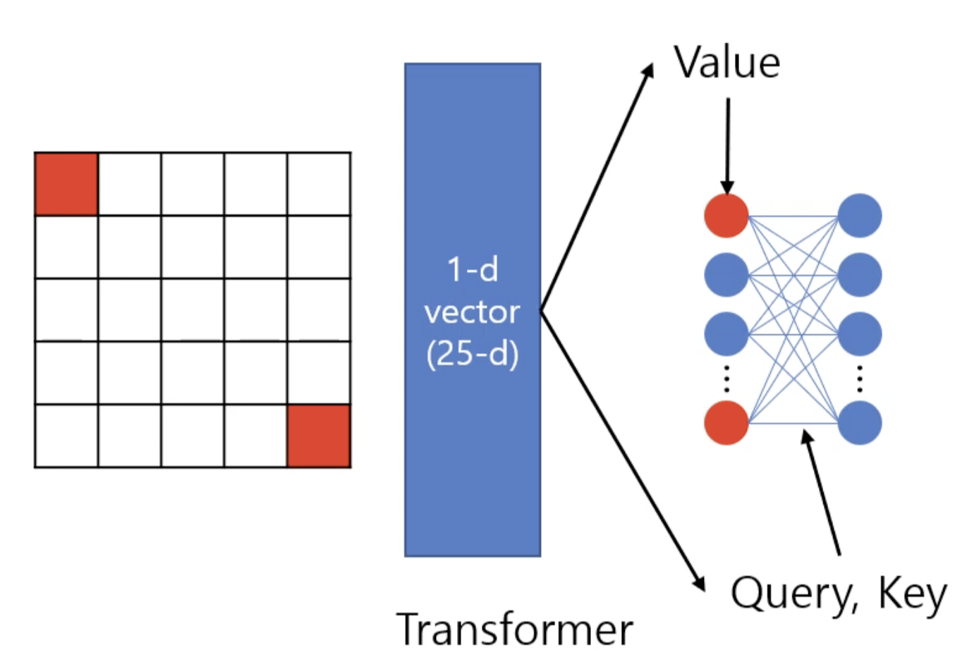 이미지 입력 → 일전 크기의 patch로 자름 → patch를 sequence로 생각하여 transformer Encoder로 입력 → 각 patch가 어떤 위치에서 왔는지 위치 정보가 손실됨. → 학습 안됨