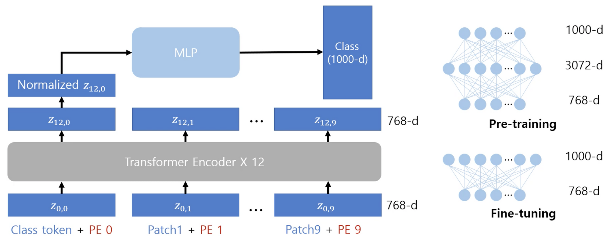ViT는 Vanilla Transformer(Attent is all you need)구조와는 다른 구조로 구성되어 있다.